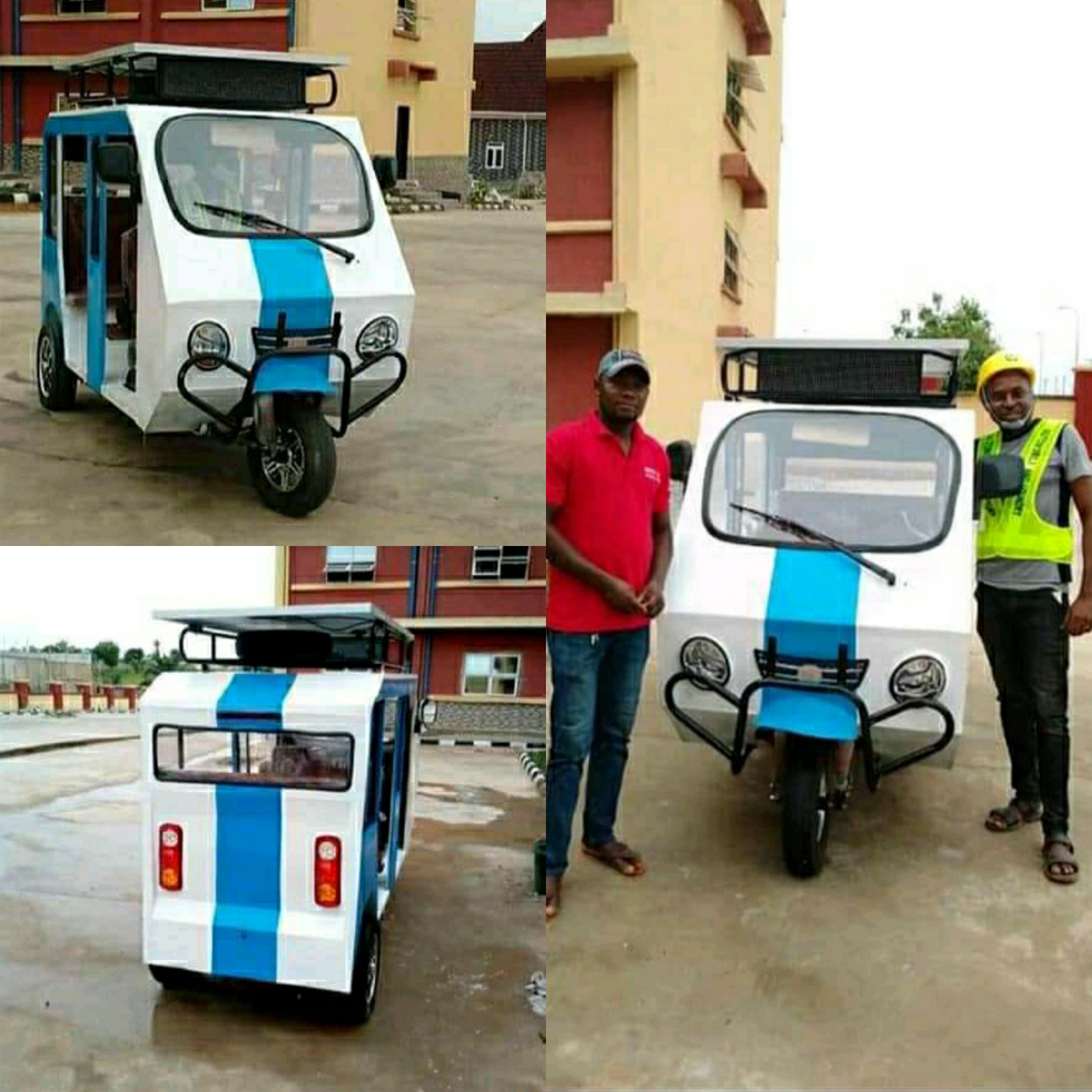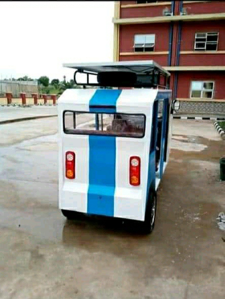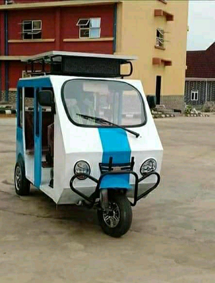 The Solar energy panel can be seen on top of the keke napep.